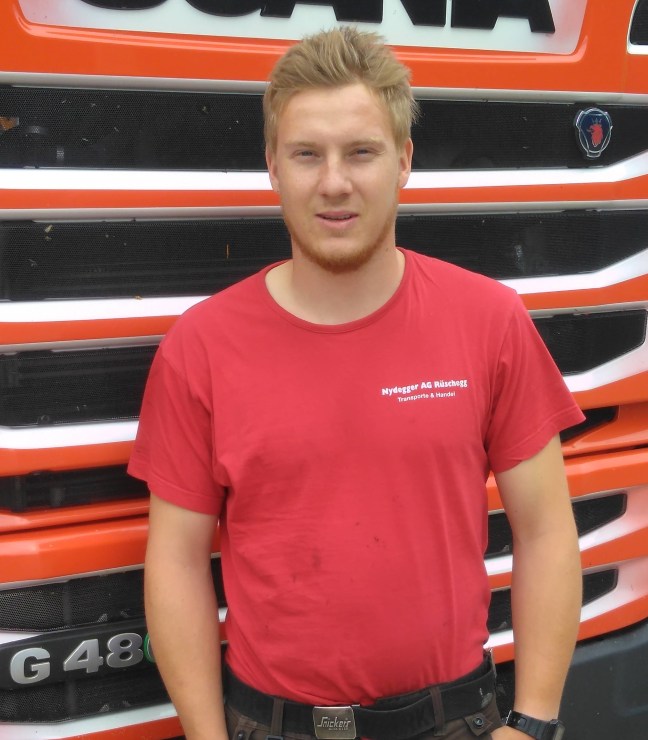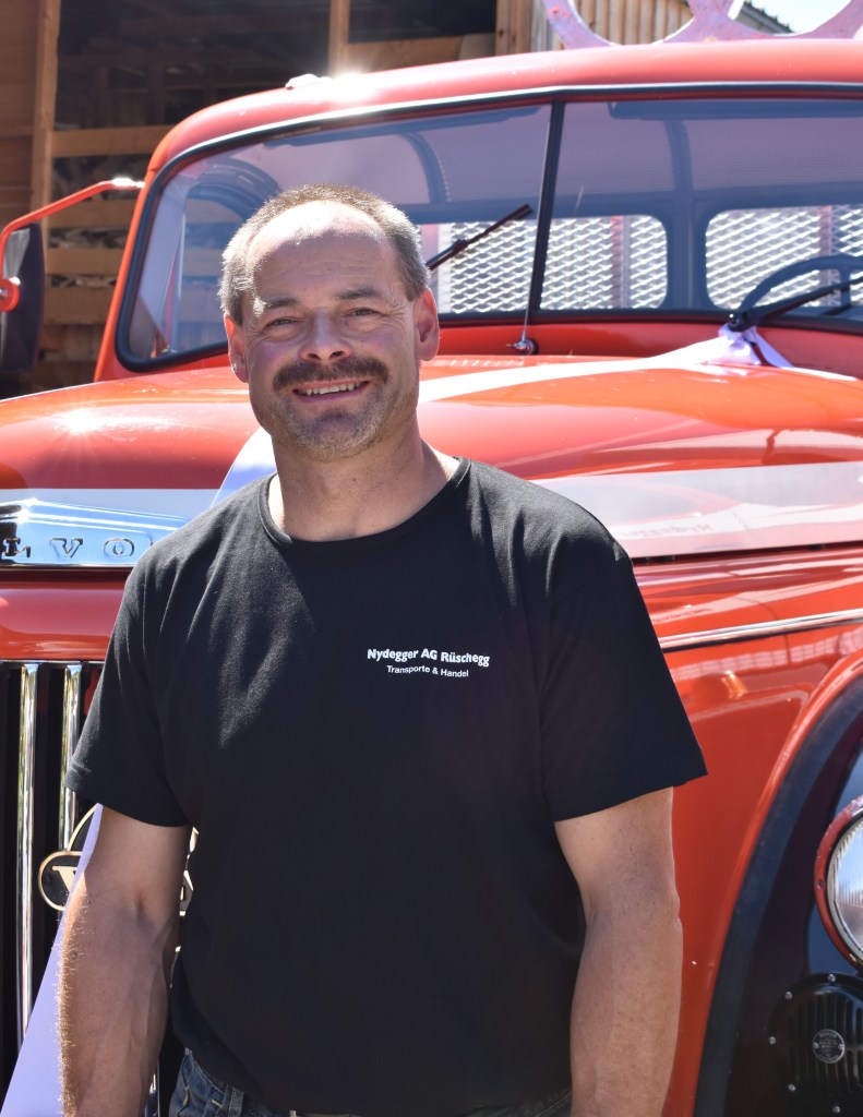 Christian ist seit 2017 im Nydegger-Betrieb. Angefangen als Rahm-Chauffeur, ist er nun hauptsächlich mit dem Blachenfahrzeug unterwegs und als Aushilfe mit den Holzfahrzeugen.