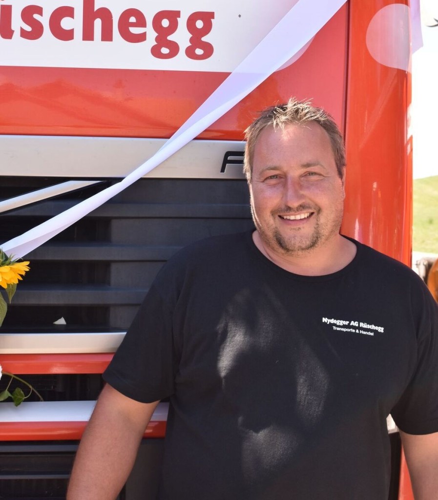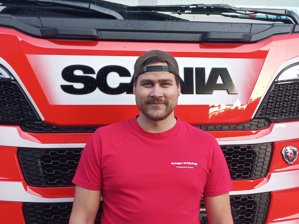 Philipp kehrte 2024 zur Nydegger AG zurück. Mit dem Sattelschlepper transportiert er Rundholz sowie Bauelemente und andere sperrige, lange Güter. Ausserdem alles, was in eine grosse Kippmulde passt.
